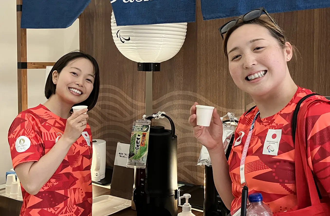 「いつでも、ふぅ。広場」はパラリンピックに出場するTEAM JAPANのための拠点です。冷凍弁当「あえて、®」やだし湯を提供し、選手たちが