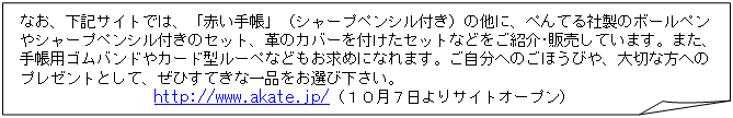 味の素株式会社(社長:伊藤雅俊 本社:東京都中央区)の100%子会社である株式会社味の素コミュニケーションズ(社長:紅松 喬 本社:東京都中央区)は、2009年10月7日(水)より「赤い手帳」2010年版を通信販売にて発売開始します。