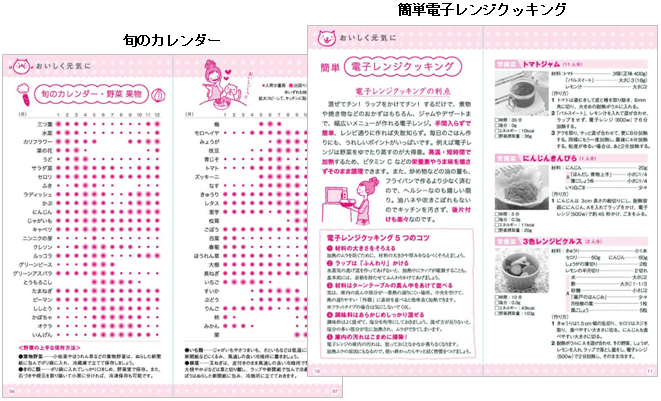 特集記事頁には、好評の、食材の旬が一目でわかる「旬のカレンダー」や「調味料の基本配合表」といったコンテンツを掲載。また、味の素