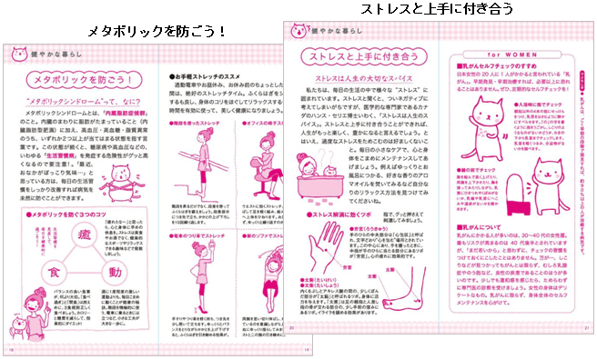 「レシピ大百科」と連動した「簡単電子レンジクッキング」や「メタボリックを防ごう!」「ストレスと上手に付き合う」などのコーナーも新設。