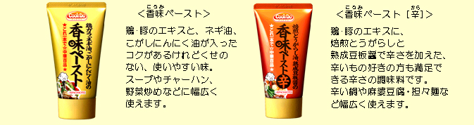鶏・豚のエキスと、ネギやにんにくなどの香味油をあわせたペースト状で、原料のうま味やコク・風味・香りが生きているクセのない深い味わいの調味料です。これ1本であらゆる中華風の料理が家庭ではなかなか出せないおいしさに。やわらかいペースト状なので、チューブから簡単に絞り出して使えます。 ![]() ![]() 希望小売価格 : 設定せず お客様向けお問い合わせ先 : フリーダイヤル 0120−688181