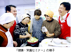 味の素グループ(味の素株式会社 社長:伊藤雅俊 本社:東京都中央区)では、2011年10月より、東日本大震災で被災した東北3県(岩手県・宮城県・福島県)の仮設住宅の集会所で、住民の方々対象の、“心と体の健康づくり”を応援する「健康・栄養セミナー」を行っており、1年間で150回以上の実施を数えました。2012年10月より、これまでの宮城県仙台市に加え、岩手県遠野市に新拠点を設け、活動をさらに拡大します。