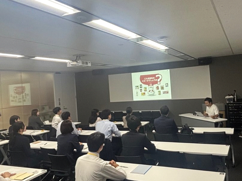 毎月1日に入社式を行っています。その後、定時終業時間までかけて中期経営方針、各事業紹介、人財育成・キャリア開発支援、人事制度、福利厚生からITデバイス設定など、幅広い講義を設定しています。説明者は各部門の担当社員で、皆さんと対話しながら説明を行っています。