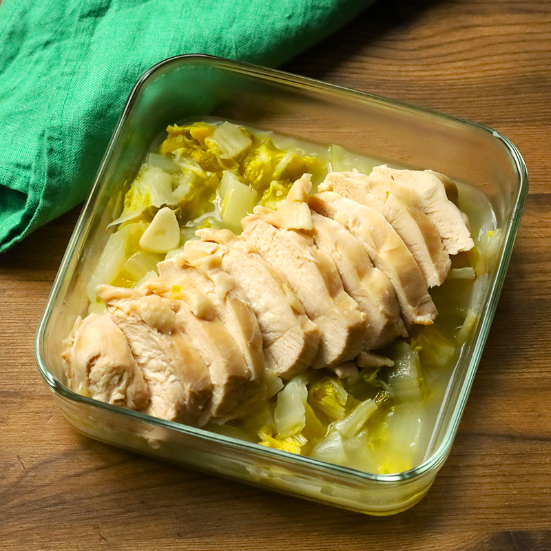 - うま味しょうがだれで♪白身魚と白菜のレンジ蒸し