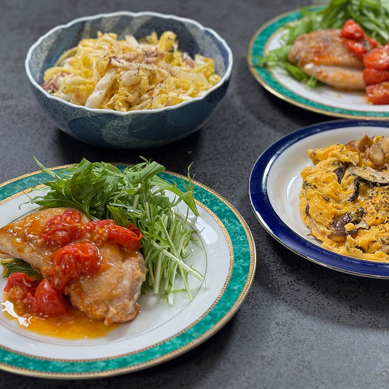 - 厚揚げと小松菜、じゃこのうま塩ナムル、他