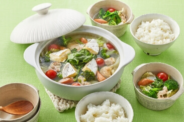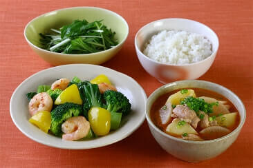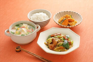 ※カラダを温める効果がある食材(ねぎ、にんにく、しょうがなど)や温かい汁物などでカラダを温めることもおすすめです。