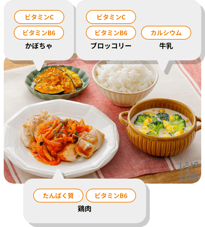 鶏肉に含まれるビタミンB6は、たんぱく質をエネルギーに変えるのを助けます◎