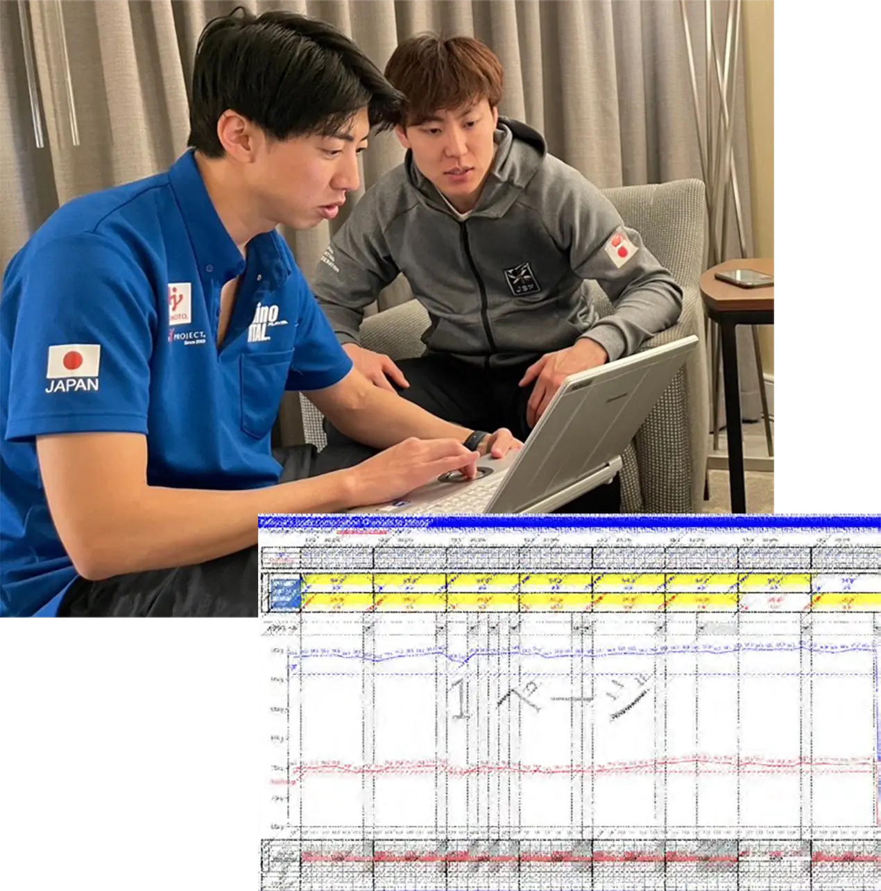 ションを確認。トレーニングのパフォーマンス向上、大会に向けての体づくりにつなげる。