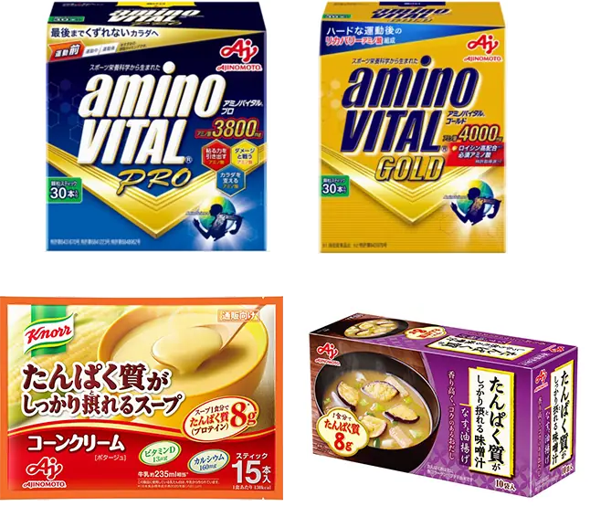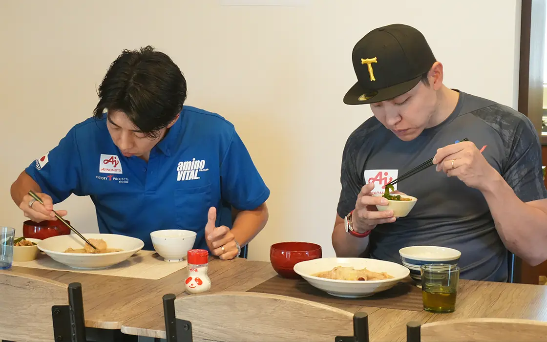 「アミノバイタル®」やスープ類などの製品を活用し、トレーニング効果の最大化とリカバリー促進をサポート。